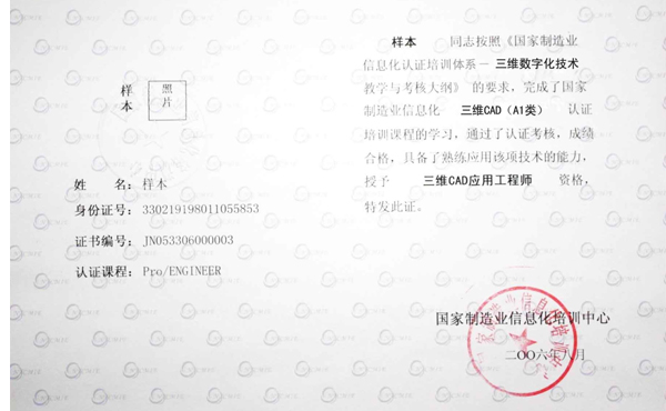 2003 年 12 月 24 日,国家制造业信息化培训中心会同中国制造业信息化 CAD 产业技术联盟(筹)共同发布消息,宣布启动“国家制造业信息化--三维 CAD 认证培训”工作。在发布“国家制造业信息化认证培训课程-三维 CAD ”培训及考核大纲的同时,消息还公布了“国家制造业信息化培训中心——三维 CAD 教育培训基地”的申报条件和办法。国家制造业信息化培训中心主任、中国制造业信息化 CAD 产业技术联盟(筹)名誉理事长孙家广院士在谈到开展这项工作的意义时说:“温家宝总理在 12 月 19 日召开的全国人才工作会议上强调,我国现代化建设需要大批能够熟练掌握先进技术、工艺和技能的高技能人才。开展三维 CAD 认证培训工作的目标就是培养熟练掌握这项先进技术的高技能人才。产品创新开发能力不足是我国制造业发展中存在的突出问题,三维 CAD 是解决这一问题的非常重要的技术和工具。” 我国从 1991 年开始,在原国务委员兼国家科委主任宋健同志“甩掉图板”的倡议下,由国家科委牵头组织实施了“ CAD 应用工程”。宋健同志当时在提到实施这项工程的意义时指出“要让大量的绘图员从繁重的体力劳动中解脱出来,从事创新的劳动”。通过十多年的努力,目前二维 CAD 的应用已经在全国制造业企业得到了基本的普及,数十万家制造企业的工程技术人员甩掉了绘图板,采用计算机绘图。在“十五”期间,科技部牵头组织实施的“制造业信息化工程”中,三维 CAD 作为重要的共性关键技术在研究开发和推广应用方面是核心内容之一。